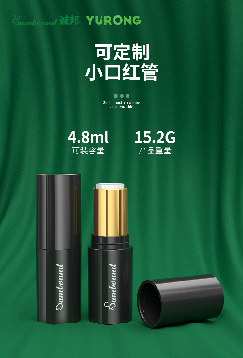 4 8ml黑色圓形口紅管空管包裝定制,這款口紅管采用卡扣開關(guān),鋁中束,可以定制logo和顏色