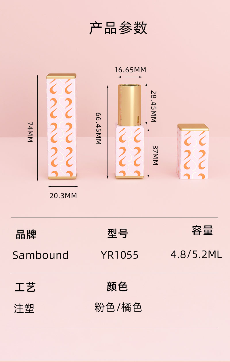 產品名稱口紅管包材產品貨號YR1055容量5ML顏色粉色-可定制材質ABS+鋁重量32 9g制做工藝注塑 噴油 真空電鍍包裝方式單個OPP袋裝再用紙箱
