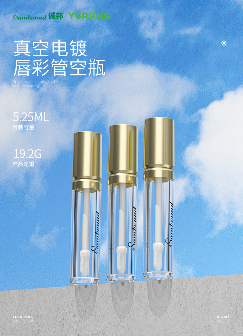 新款金色蓋5 25ml唇彩管空管定制,電鍍金色包材定制。