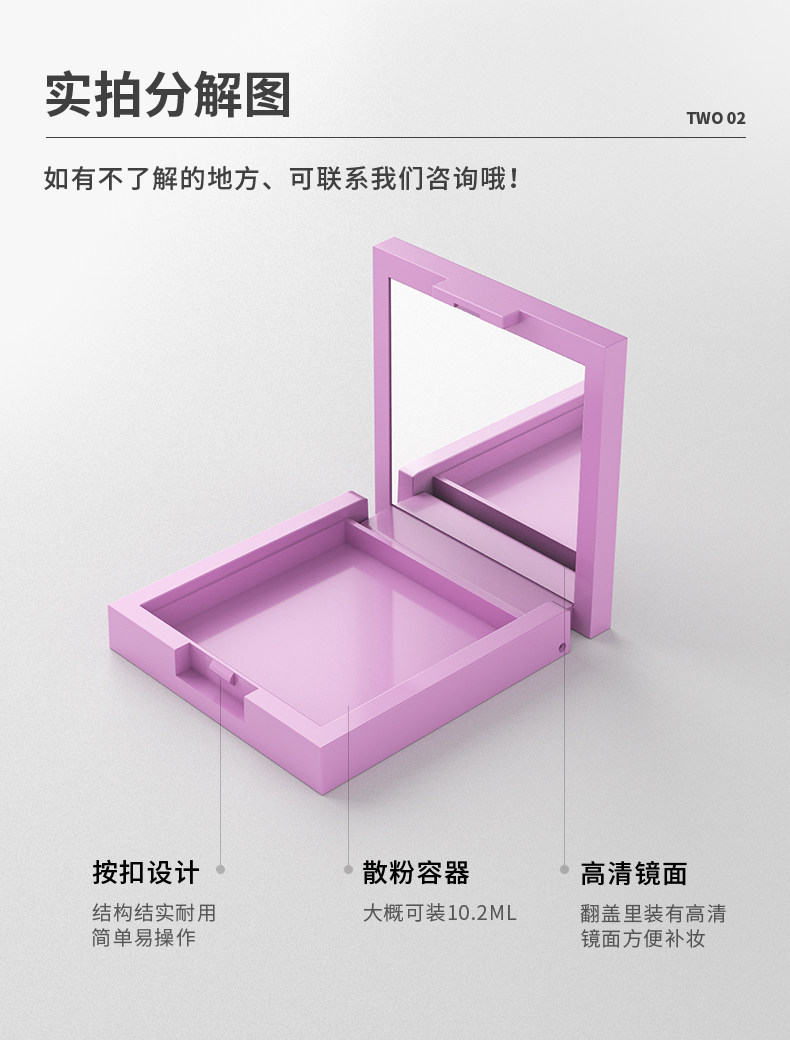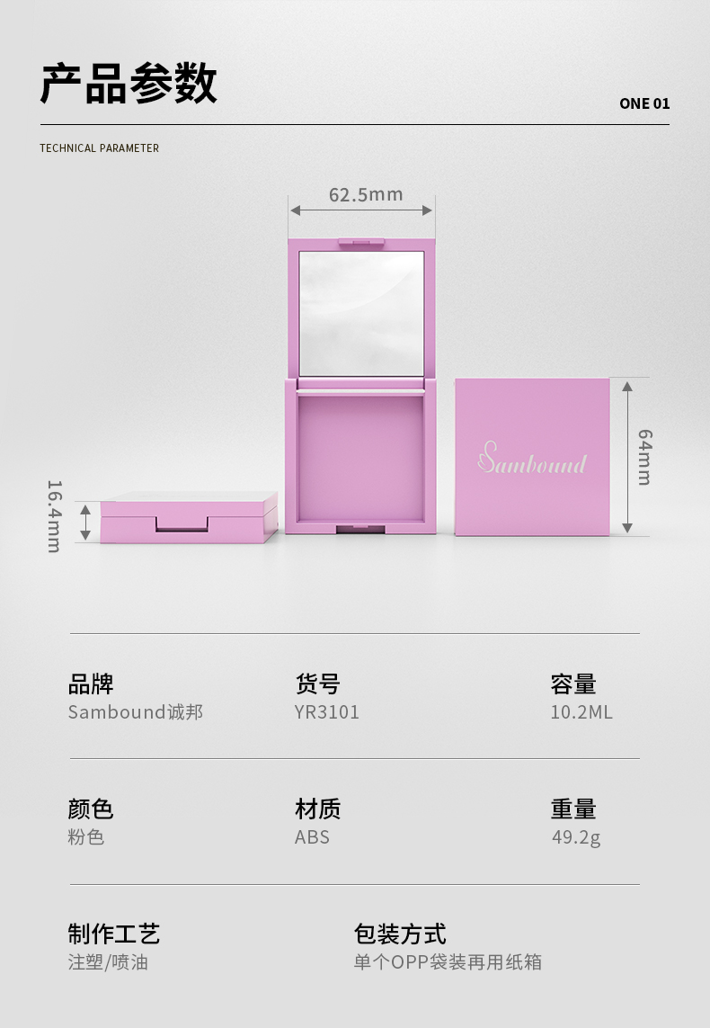 粉色方形腮紅分裝盒10g彩妝包材定制廠家,可以根據客戶需求定制注塑、絲印、噴涂、logo、電鍍等工藝