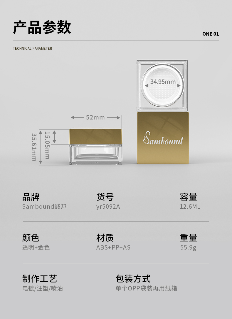 化妝品包材注塑廠定制方形散粉盒,12 6ml,可定制logo、顏色