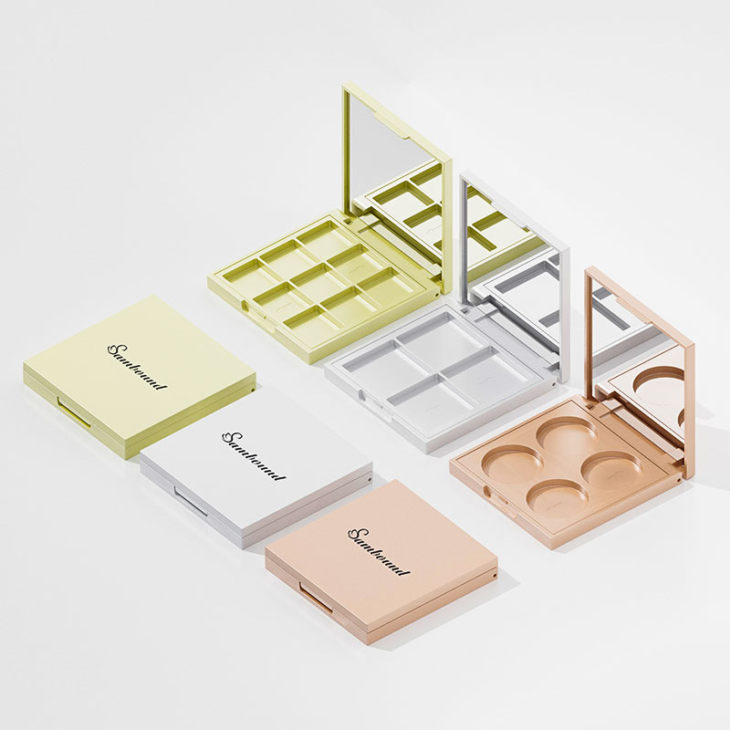 大牌同款眼影盤,正方形多格設(shè)計(jì),蓋子可以做透明的,也可以做實(shí)色帶鏡子。多用于分裝眼影,腮紅,修容,高光等,一盤多用化妝品包裝
