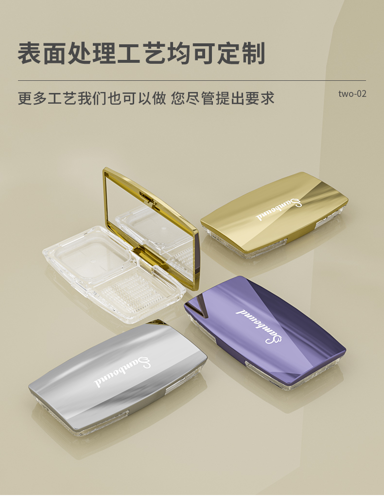 高透明高光腮紅盒,采用ABS和AS料,表面蓋子真空電鍍,也可以按需定制顏色、logo等,東莞誠邦化妝品包材是一家成立2010年的彩妝包材注塑價格廠家,國內外3家分廠。