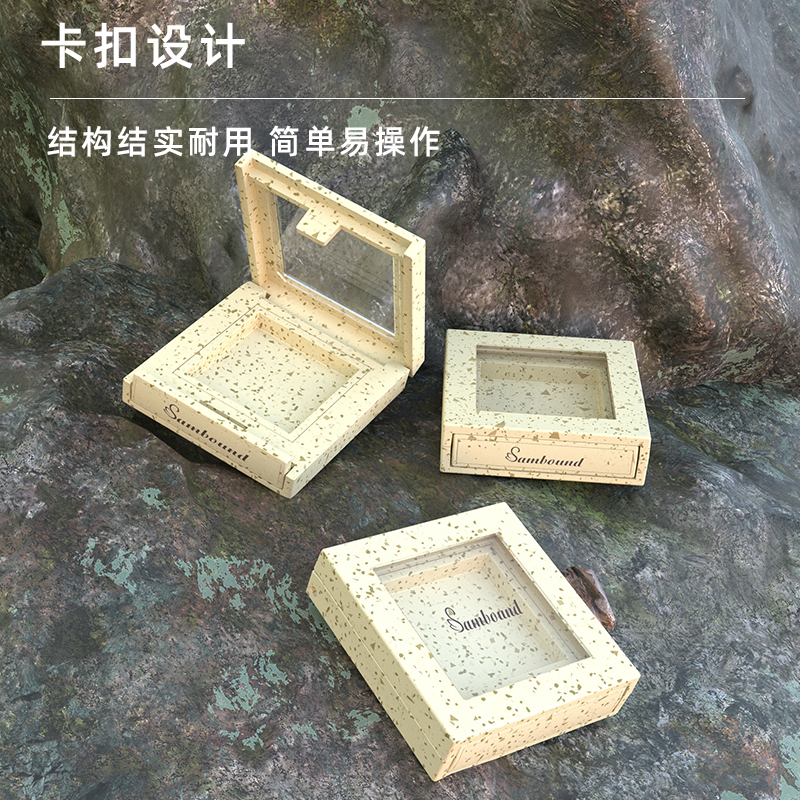 產品名稱粉盒包材產品貨號YR3003b容量1 5ML顏色灰白色-可印刷材質ABS+小麥桿材質尺寸41*40*11制做工藝印刷包裝方式單個OPP袋裝再用紙箱